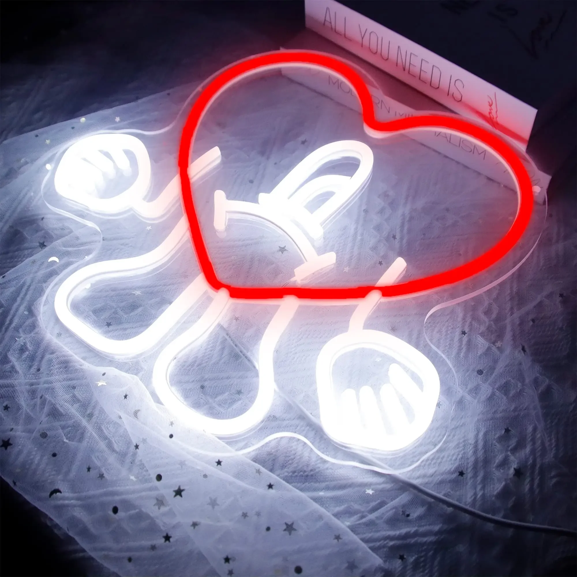 Néon coeur chanteur déco originale : une œuvre artistique lumineuse