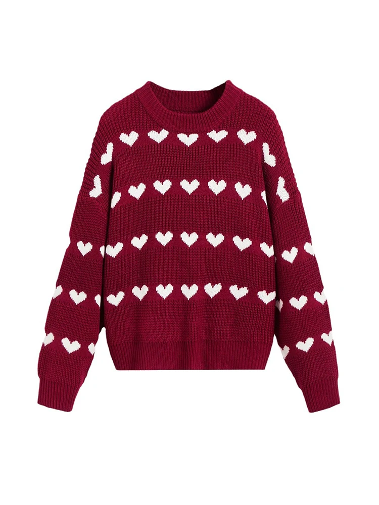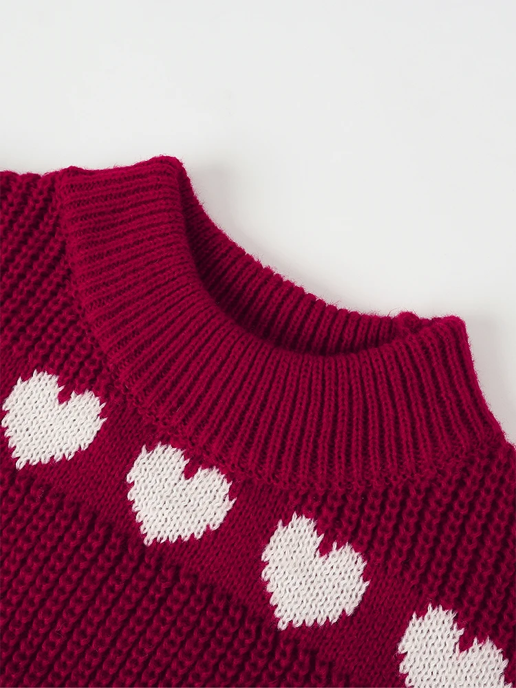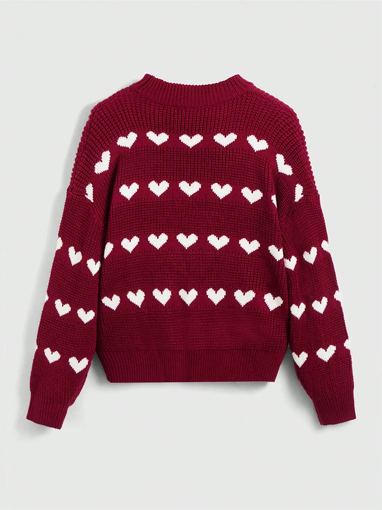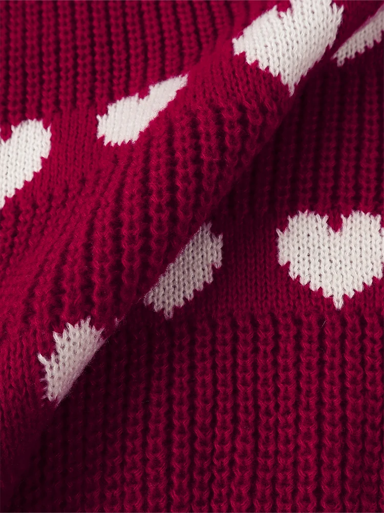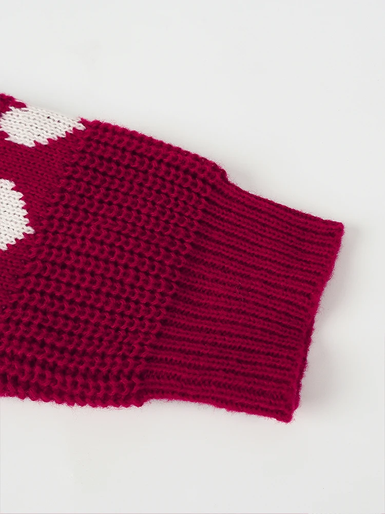 Pull tricot femme coeur rouge blanc