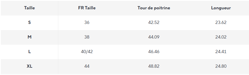 • Longueur du vêtement : standard