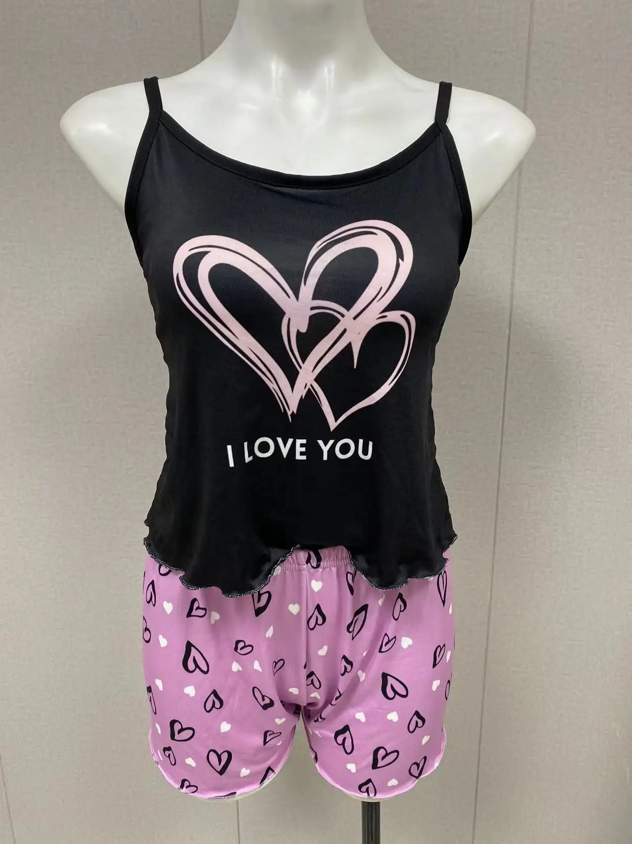 Soyez le premier à laisser votre avis sur “Pyjama coeur femme été double coeur noir et rose léger”