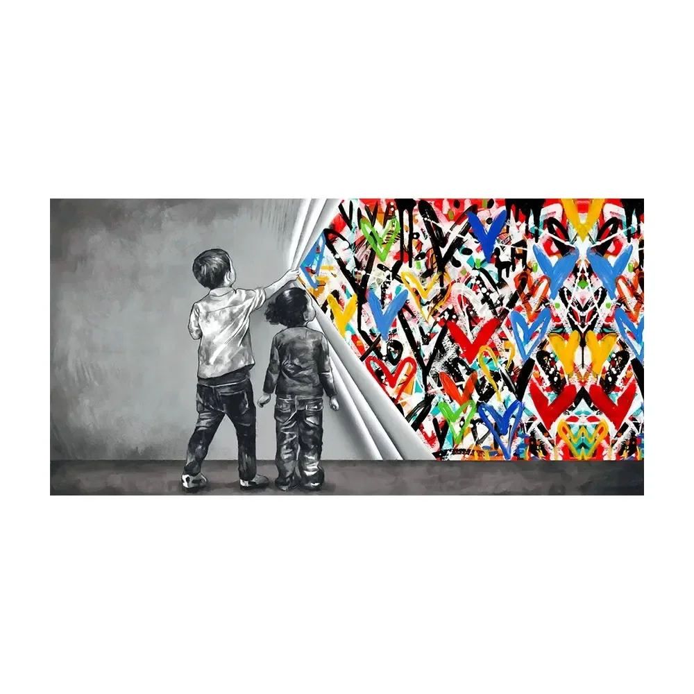 Transformez votre espace avec le tableau art coeur enfants graffiti abstrait